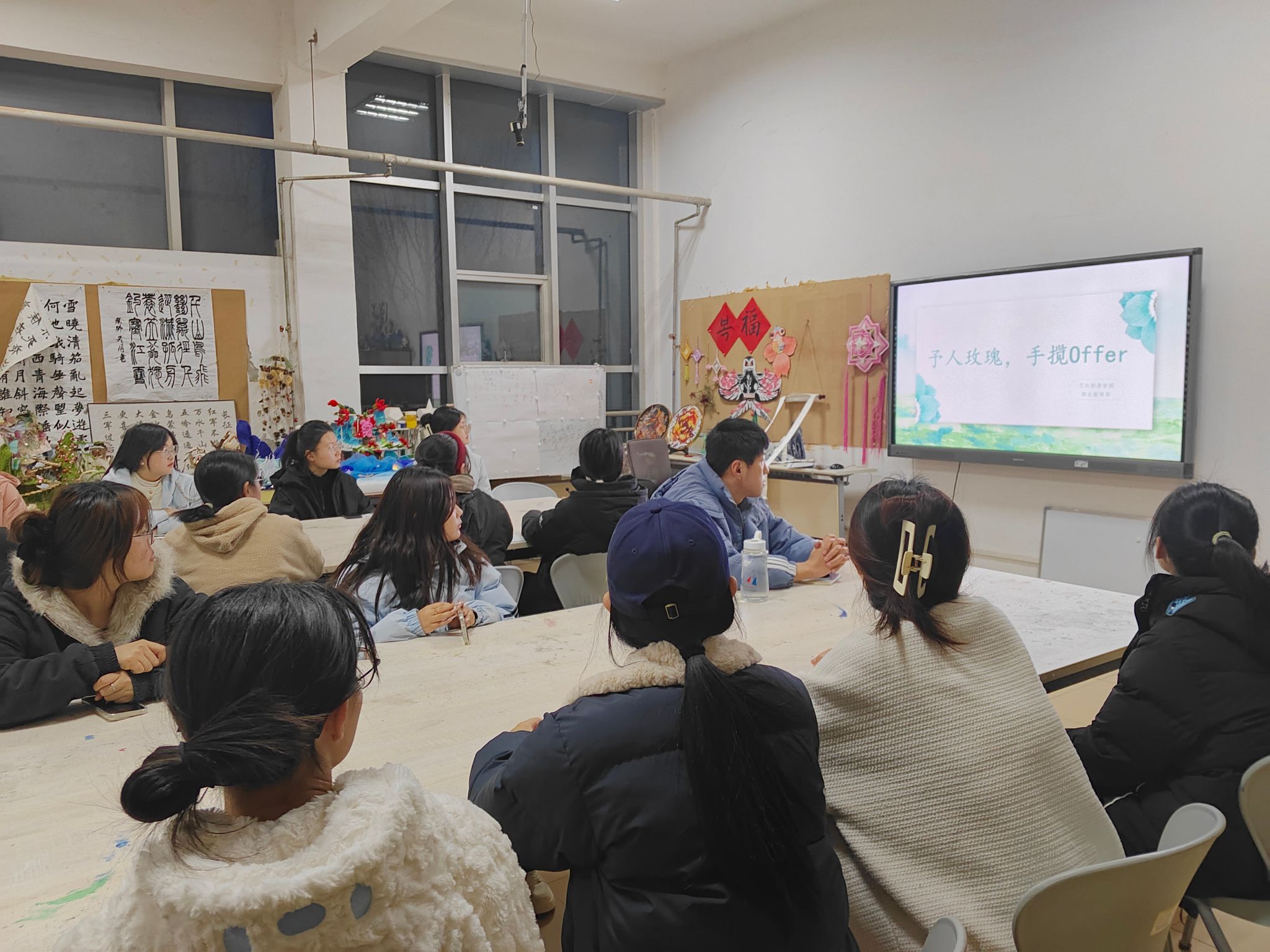 为深化“一站式”学生社区育人功能,推动就业服务精准化、全程化,3月26日,文化旅游学院依托“一站式”学生社区平台,在学前美术手工教室举办“予人玫瑰,手揽offer”职场分享活动。本次活动吸引了23级、24级各专业的同学积极参与。