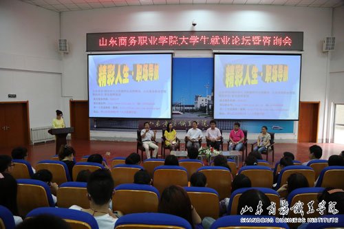 6月10日下午2点30分,我院招生就业办公室与烟台市人力资源和社会保障局在图书馆学术报告厅联合举办了主题为“精彩人生职业导航”的大学生就业论坛与咨询会,烟台市人力资源和社会保障局赵中海、王道明、林肇军、王韦懿、孙力伟等出席会议。山东商务职业学院招生就业处,各系部就业辅导员及500名学生参会。