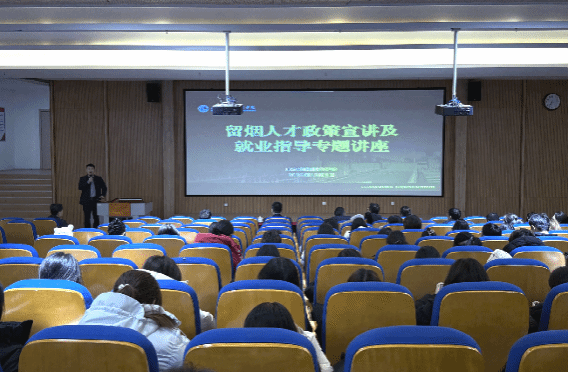 于文浩的分享则为学生打开了“产业对接”的新视野。作为我校长期合作的重点就业区域,烟台高新区此次通过案例展示、数据解读,介绍了其作为国家级高新区的产业优势——生物医药产业2024年营收近百亿元、航空航天产业产值占全市1/3以上,以及70家省级以上科创平台、5家国家级科技企业孵化器的创新生态,重点推介了高新区“免费人才公寓+实习补贴+创业贷款贴息”的人才服务体系。