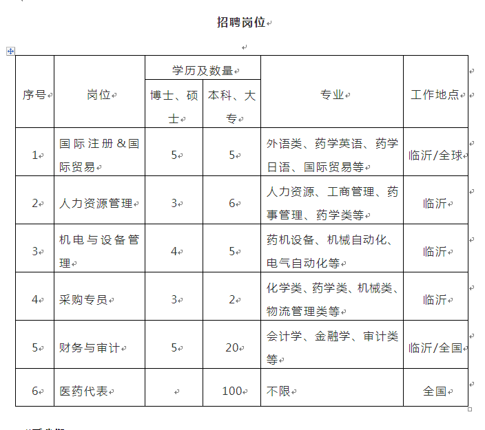 山东罗欣药业集团招聘