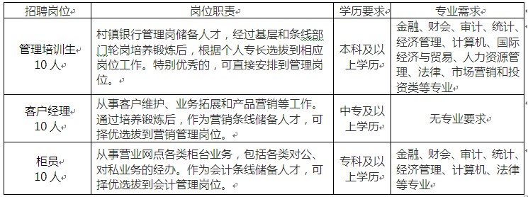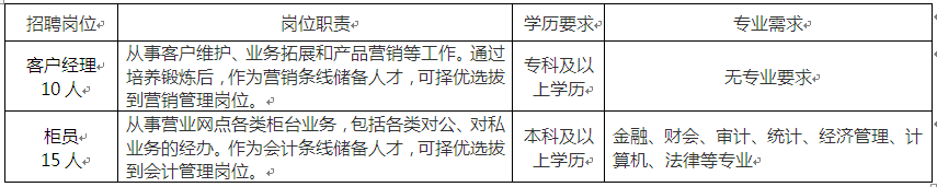 应聘客户经理、综合柜员岗:优秀生源或有业务资源者可放宽至专科学历