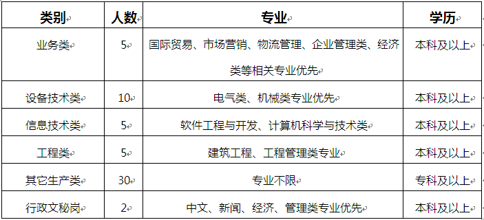 3、对于应聘设备技术类、信息技术类、工程类的优秀毕业生,学历可放宽至专科。