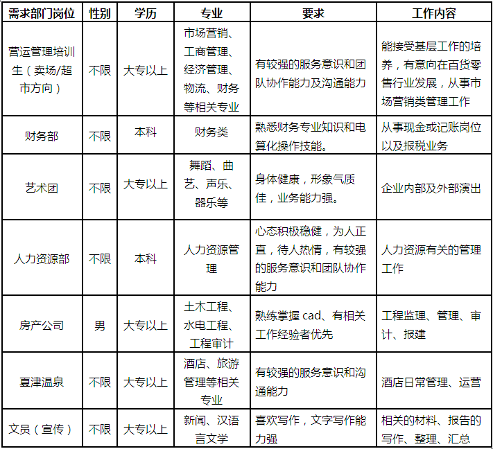 地 址:山东省德州市德城区湖滨中大道118号百货大楼15楼人力资源部