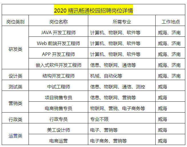 3、快速晋升的平台优势:提供快速双向晋升通道(管理向、技术向,工作地点:可选威海、济南,后期开放北京、深圳、上海、杭州岗位。