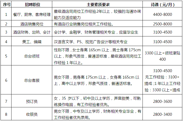 2、执行星级酒店工资体系,伴随着晋级工资上调,若当月出勤满勤,则享受100元全勤奖。
