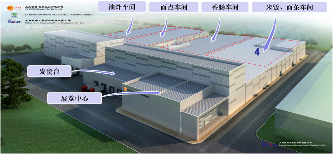 正大食品企业(青岛)有限公司,是正大集团香港上市公司投资的全资子公司,总投资18亿元人民币。项目于2012年9月正式开工建设,2015年6月实现正式投产运营;公司计划建成九条全自动先进生产线,引进欧盟、美国、日本等地区最先进的生产设备及加工技术;产品包括油炸、香肠、米饭、烧麦、面条、包子等,六个大类50多个品种,年产能逾10万吨,年产值达30亿元人民币,是正大集团从饲料、养殖、食品向餐桌延伸产业链的践行者,将成为目前中国乃至亚洲投资最大、设备最先进、自动化程度最高的食品深加工企业。