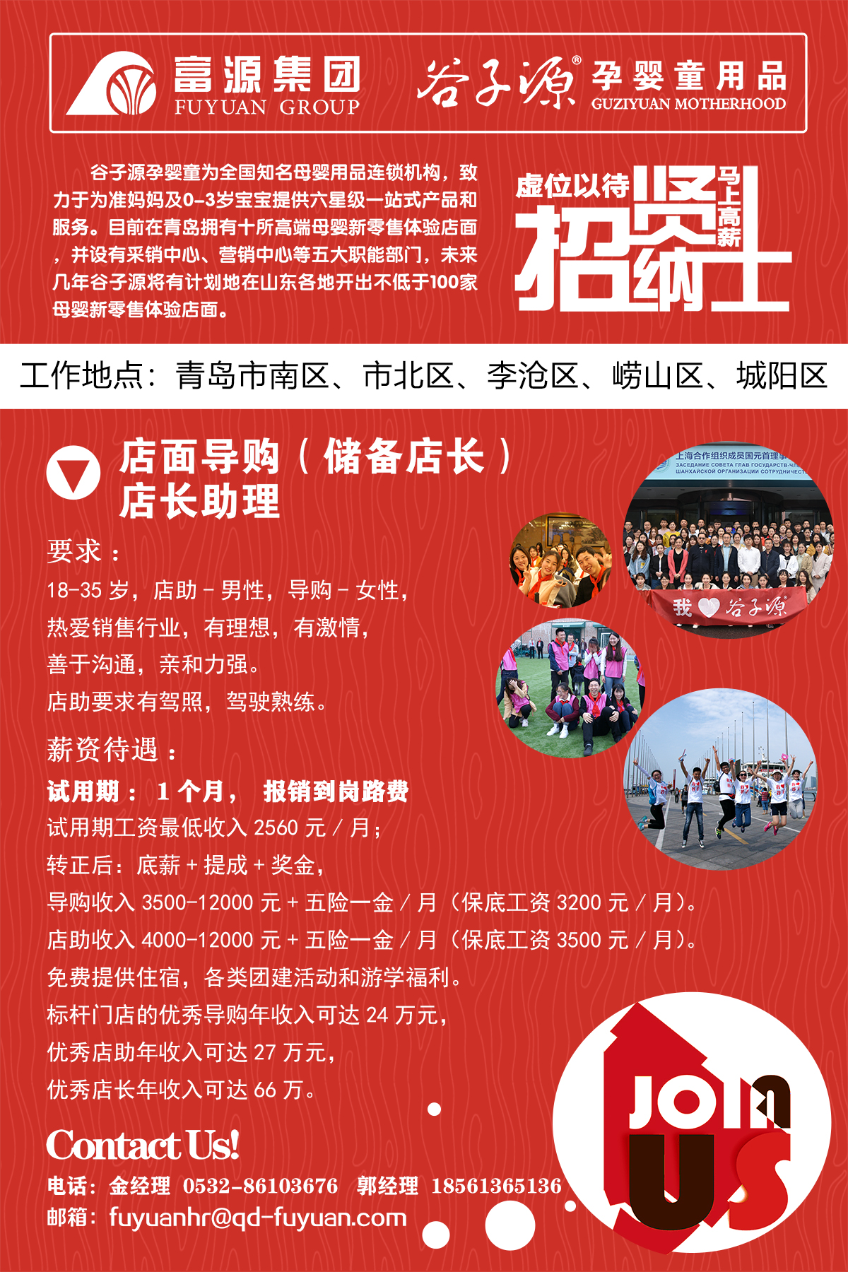 青岛富源集团----山东谷子孕婴用品有限公司招聘简章