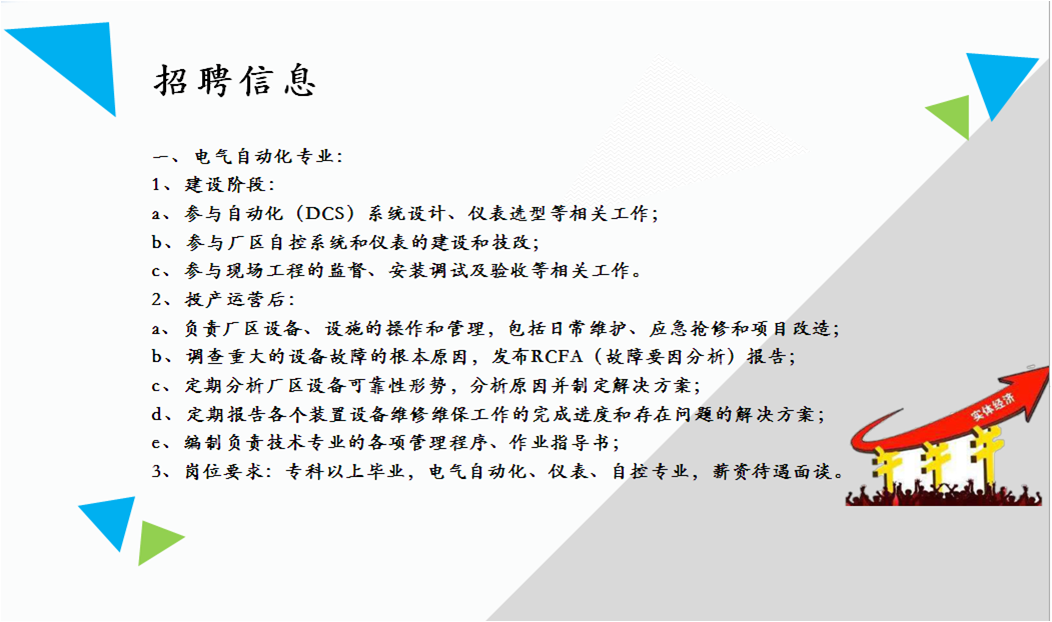 公司厂区一期项目即将建设完成,公司发展空间巨大,前景无限,现面向社会及广大高校招聘各类人才,作为公司发展的核心人才进行储备和培养!欢迎各界优秀人士!
