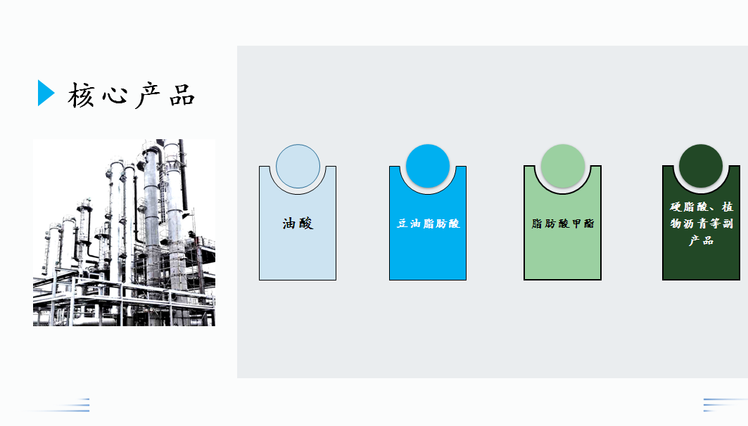 烟台新力生物科技有限公司成立于2015年3月,注册资金9500万元,主营业务涵盖生物柴油、环氧脂肪酸甲酯、脂肪酸等产品的生产与销售,新能源技术研究与开发。公司落户于美丽富饶的滨海开放城市烟台,厂址位于烟台市开发区西宁路与兰州大街交汇处,厂区占地3.8万平方米,总投资2亿元。