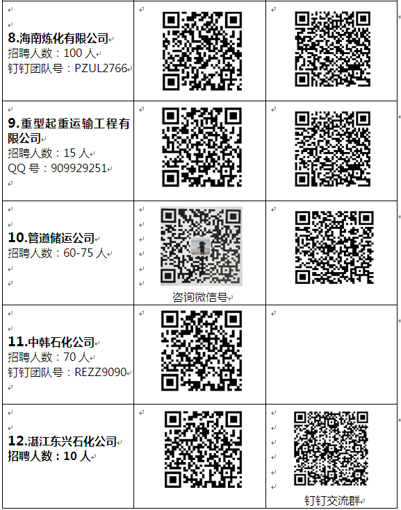 专业要求:炼油化工装置生产操作、设备机械、电气仪表运行、输油运行、管道抢维修、起重操作等专业。(各单位招聘专业不同,详见招聘网站发布信息。)