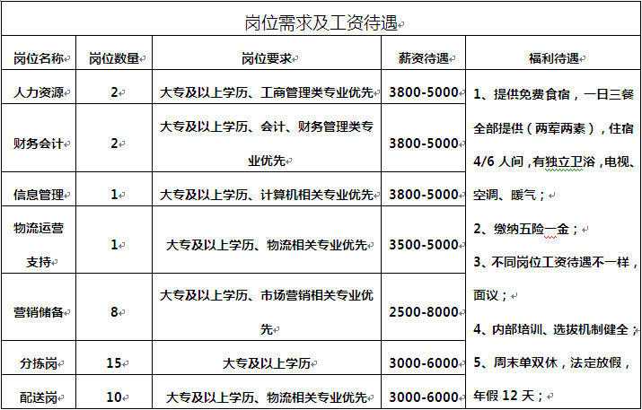保障:提供免费食宿(独卫、空调、暖气、电视等设施齐全,免费提供一日三餐),周末双休,法定节假日按规定休息,缴纳五险一金