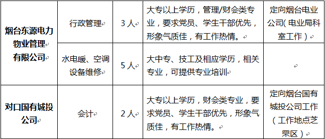 二、国有企业代招聘岗位: