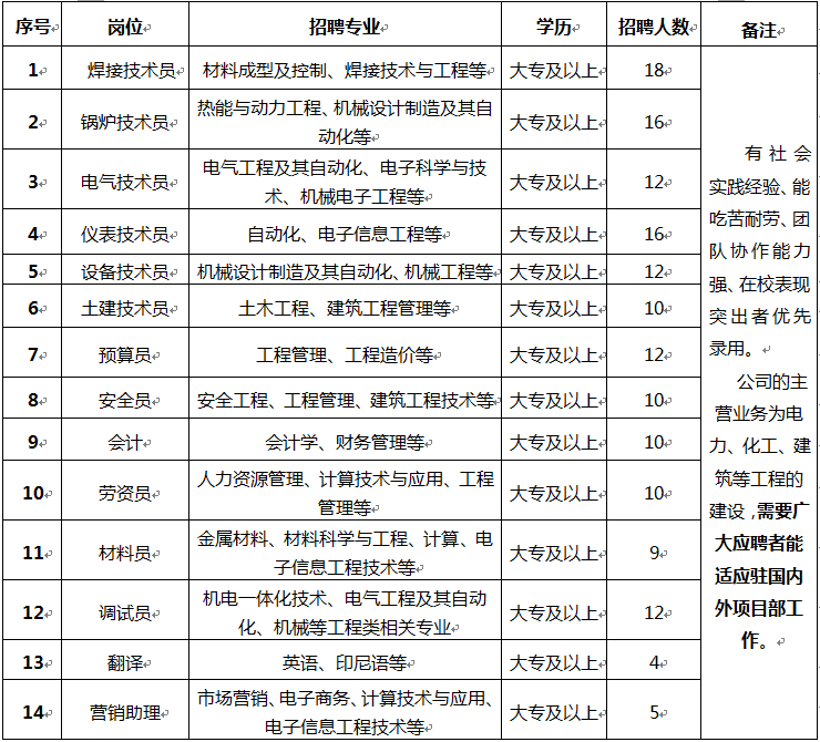 公司具有一、二级建造师350余人,中、高级工程师300余人,技师、高级技师280余人;公司先后被济宁市评为济宁市高技能人才培养示范基地、济宁市属高校毕业生就业见习基地、济宁市外派劳务培训机构、济宁市海外领事保护培训基地;济宁市高技能人才自主评价企业。公司“坚持以奋斗者为本,持续提升员工幸福感”,以经营的思想和方法,培养、使用、开发各类人才,为人才的成长提供良好的环境。欢迎有理想、有抱负的行业精英人才加盟,与我们并肩作战,携手奋斗,共同成长,共创企业与个人无限广阔的美好明天。