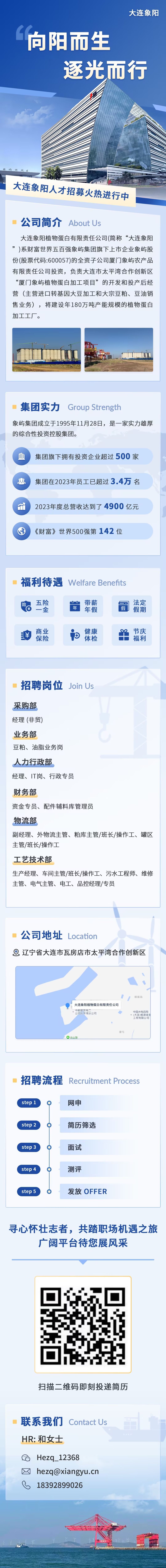 大连象阳植物蛋白有限责任公司(简称“大连象阳”)系厦门市国资委下属企业象屿集团上市企业象屿股份(股票代码:600057)全资子公司厦门象屿农产品有限责任公司投资,主要负责大连市太平湾合作创新区“厦门象屿植物蛋白加工项目”的开发和经营,主营进口转基因大豆加工和大宗豆粕、豆油销售业务,目标建设成年180万吨产能规模的植物蛋白加工工厂,为东北市场提供稳定的供应,同时建立配套植物蛋白油脂加工能力,持续地为东北食用油市场提供优质产品、间接带动周边饲料、包装、物流等相关产业发展。