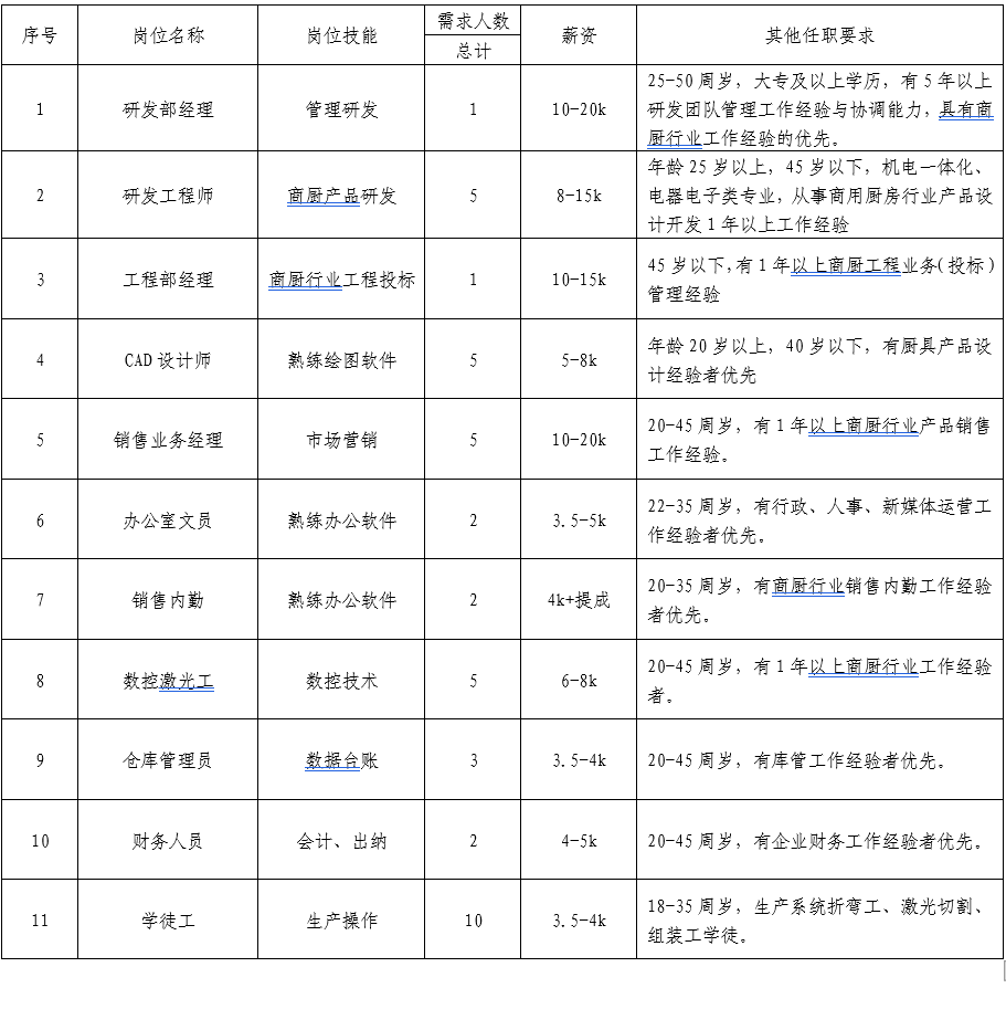 招聘信息如下: