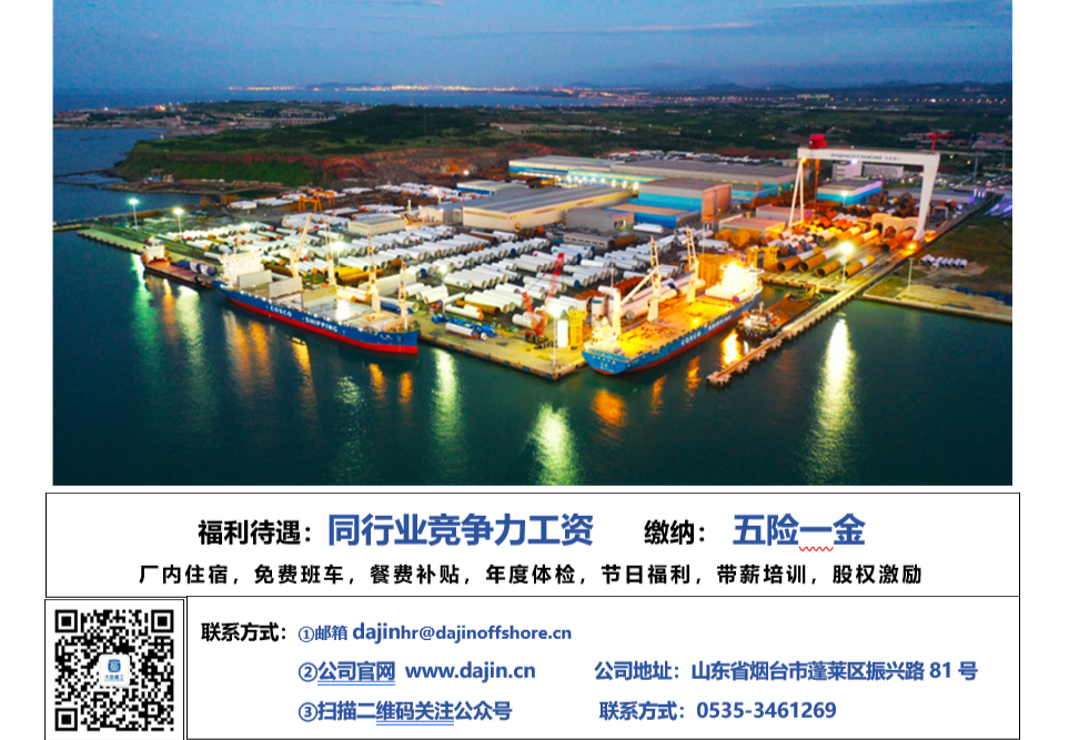 大金重工已经稳居全球风电装备制造产业第一梯队,是国内第一家出口欧洲海塔(14.7MW级)、亚洲第一家出口欧洲超大型单桩(14.7MW级)的风电海工装备制造企业。蓬莱大金海洋重工有限公司作为大金重工的全资子公司,成立于2009年,注册资本:1.3亿元(人民币),位于山东省烟台市蓬莱区,海陆空交通便利。蓬莱大金作为临港型企业,拥有自己的重型装备出海口,能提供货物进出口及港口货场服务,产品服务全球市场。