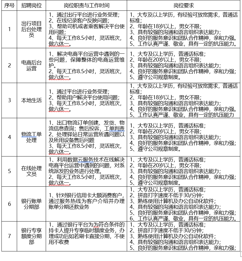 四、招聘岗位、职责、要求