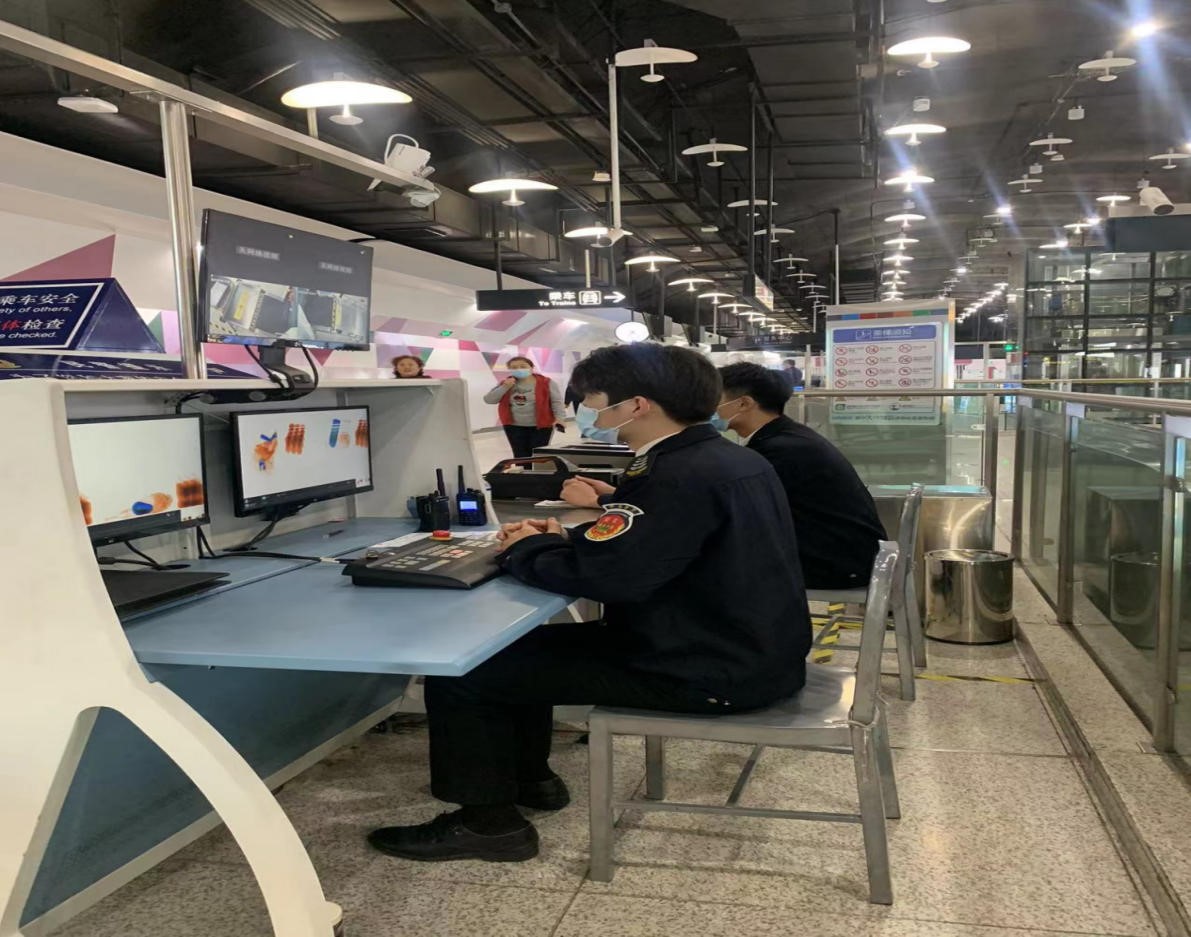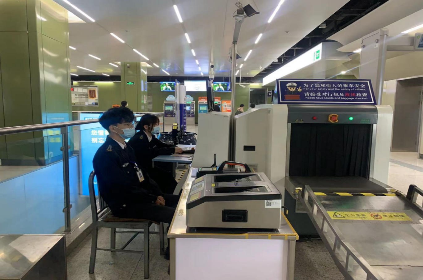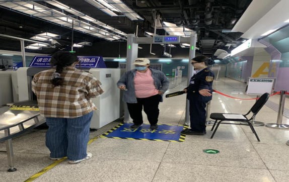 手持X射线安检机对进站所有乘客进行手检,逢液必检,逢包必检,逢疑必 问。