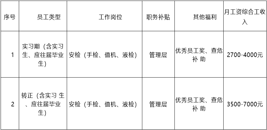 公司福利:意外险、五险、一天两餐工作餐、岗位补贴、查危补助、节日补贴等福利;